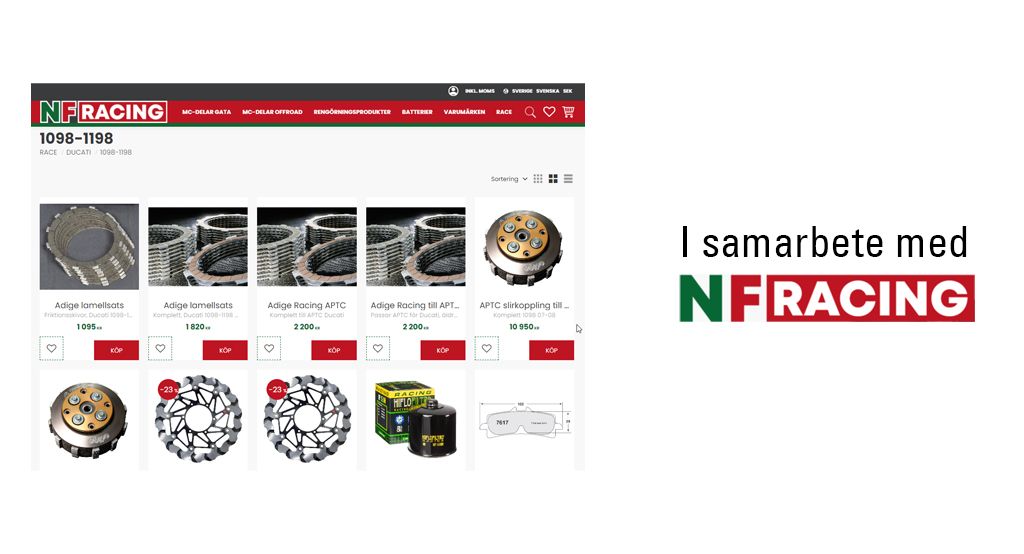 Som medlem i Svenska Ducatiklubben har du 10% rabatt i NF Racings webbshop. Vid beställning anger du rabattkoden: DUCCEKLUBBEN2026